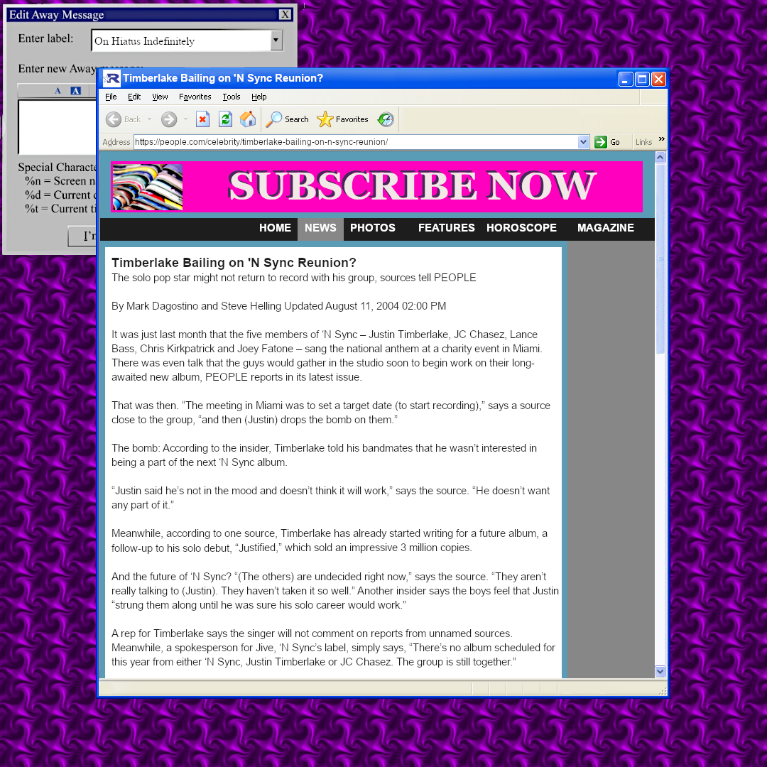 - Title: Timberlake Bailing on ‘N Sync Reunion?