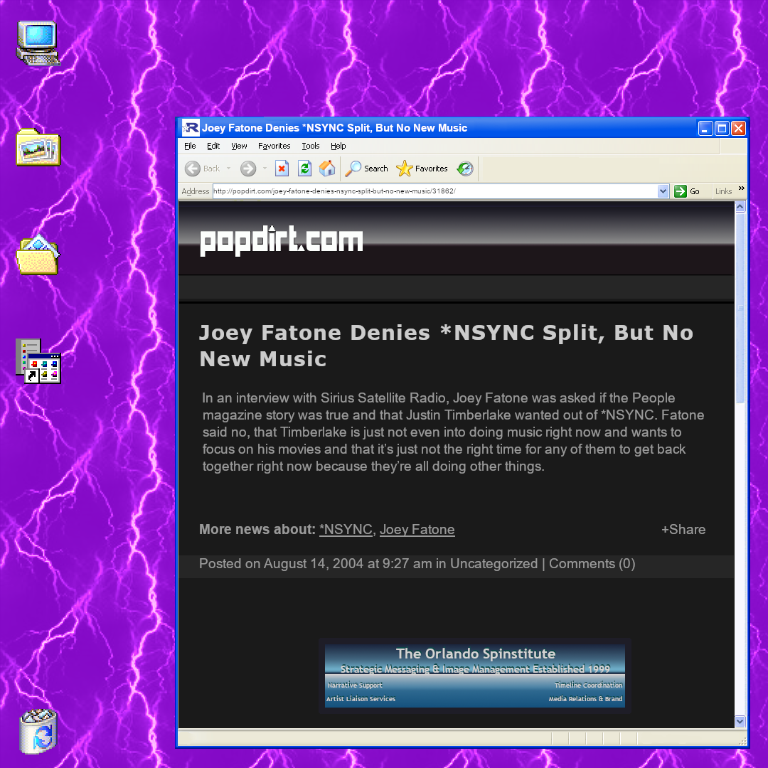 - 5) Pop Dirt publishes a post claiming Joey Fatone denied *NSYNC breaking up when he was interviewed on Sirius Satellite Radio.