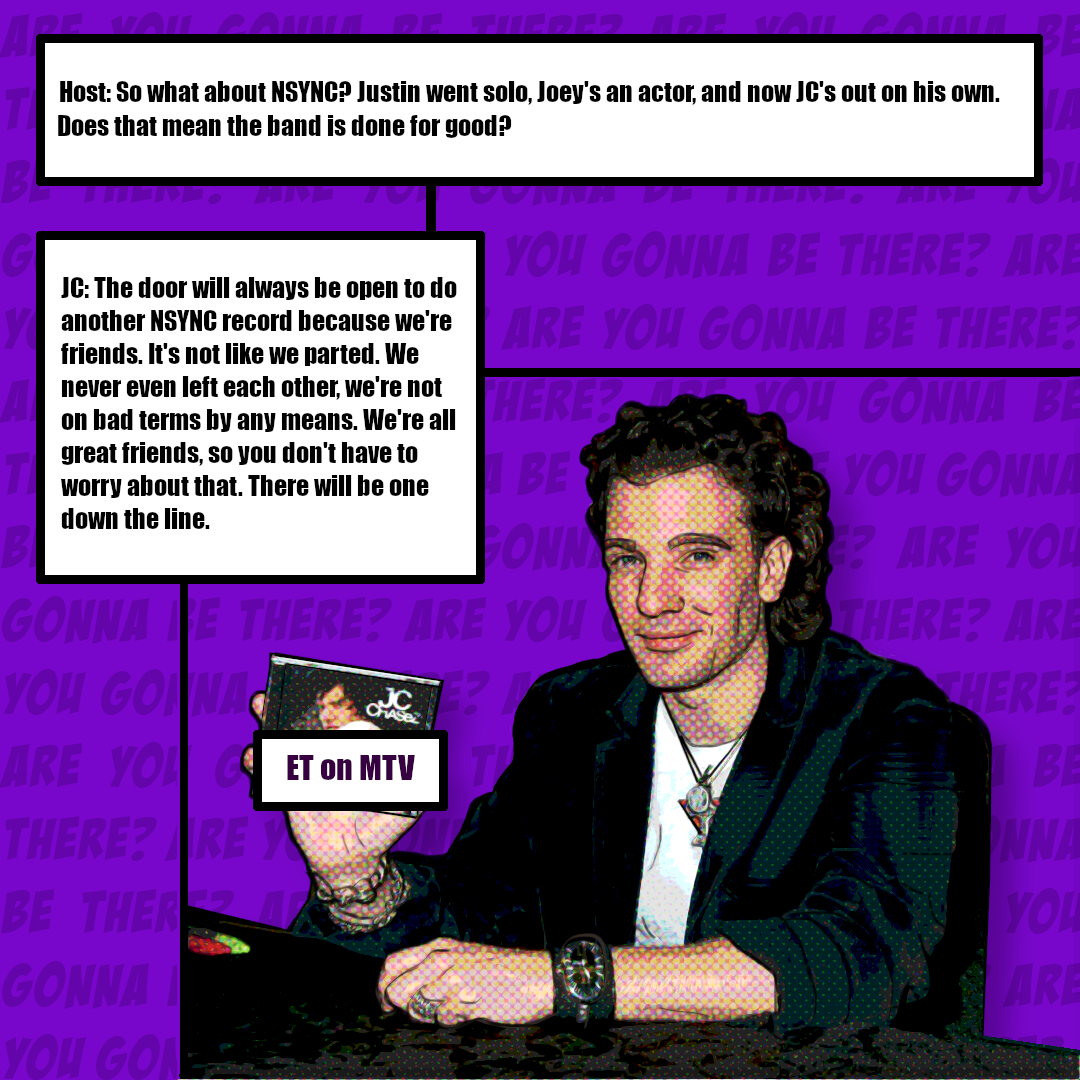 - 2) JC Chasez appeared on MTV’s Total Request live and replied to a question about whether he would leave *NSYNC (13:06 timestamp). The video posted on Youtube is labeled 2/23/04.