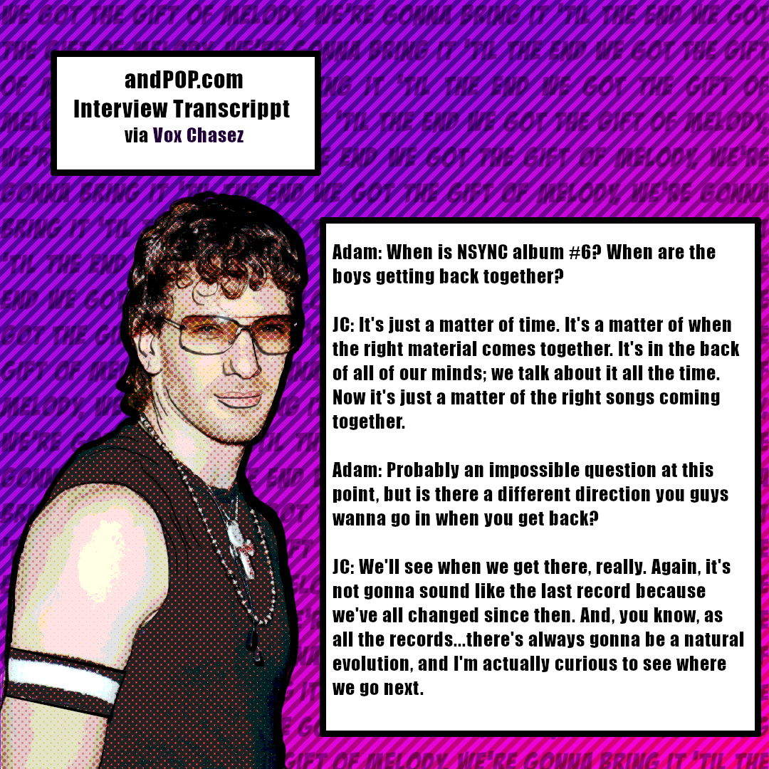 - 1) AndPOP.com published an interview with JC Chasez. A transcript of the interview was posted on the Vox Chasez fan site with a date of 6/8/04.